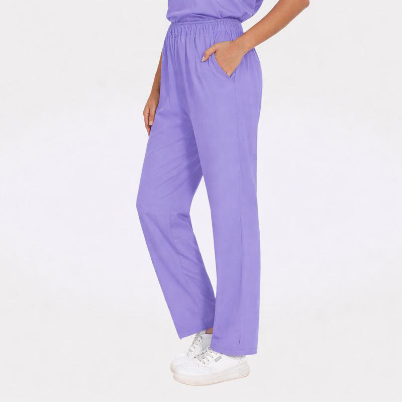 Straight-leg scrub pants with a full elastic waistband for all-day comfort