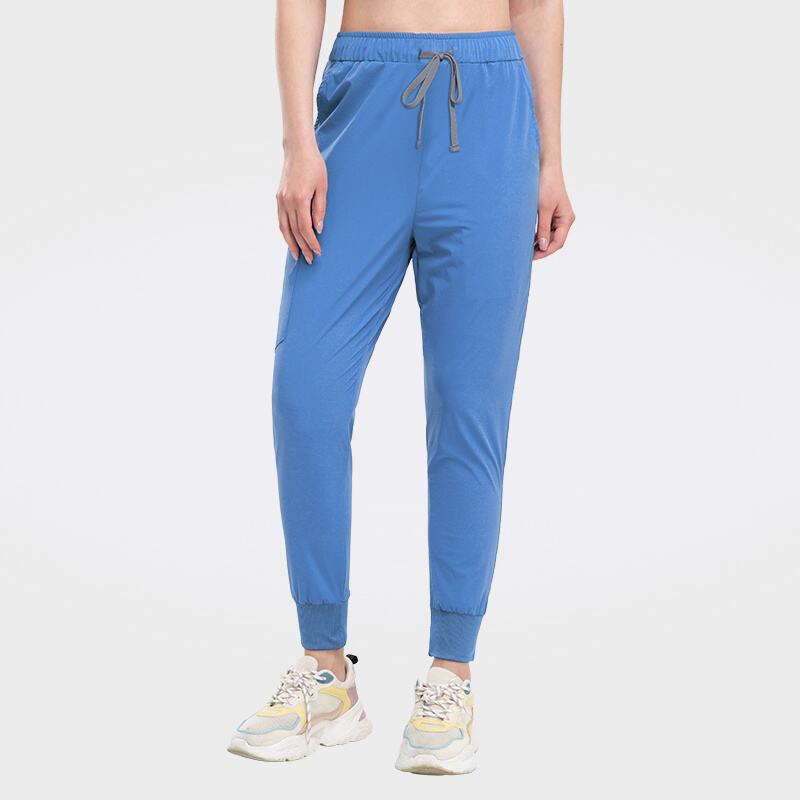 Jogger-style scrub pants with an adjustable drawstring waist and elasticated back for a secure, personalized fit