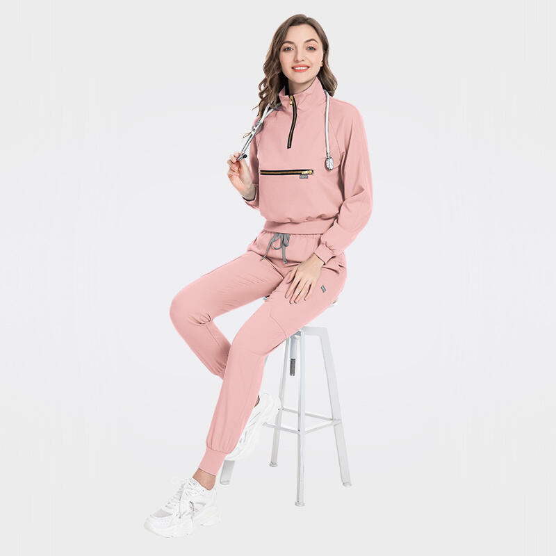 Designed for high-intensity medical environments such as emergency departments, hospital wards, clinics, and diagnostic centers. Featuring a tailored zipper neck top with a functional chest pocket, multiple front and side pockets, and jogger-leg pants—the design supports efficient, categorized storage of frequently used tools, allowing quick access during patient care, rounds, and emergency response.