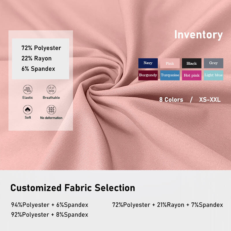 · 72% polyester + 22% rayon + 6% spandex blend, breathable, sweat-wicking & stretchy, unrestricted movement for long shifts
