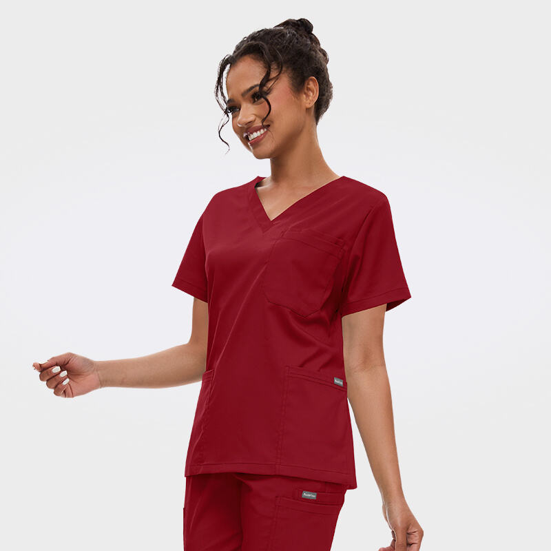 Classic V-neck scrub top with functional chest pocket